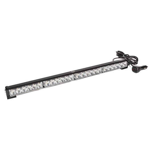 Маяк-стробоскоп 12/24 В, 24 Вт, желтый, 1-стор. (4 блока Epistar), 18 реж., крепление на кронштейне, прикуриватель (провод 3м), 590*40*50 мм