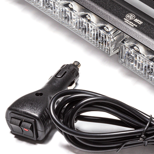 Маяк-стробоскоп 12/24 В, 48 Вт, желтый, 2-стор. (4+4 блока Epistar), 18 реж., крепление на магните, прикуриватель (провод 3м), 590*120*78 мм