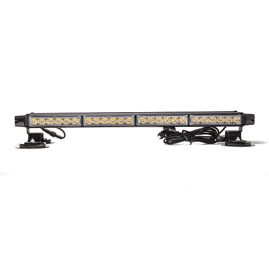 Маяк-стробоскоп 12/24 В, 54 Вт, желтый, 4-стор. (4+4+2 блока Epistar), 18 реж., крепление на магните, прикуриватель (провод 3м), 590*120*78 мм