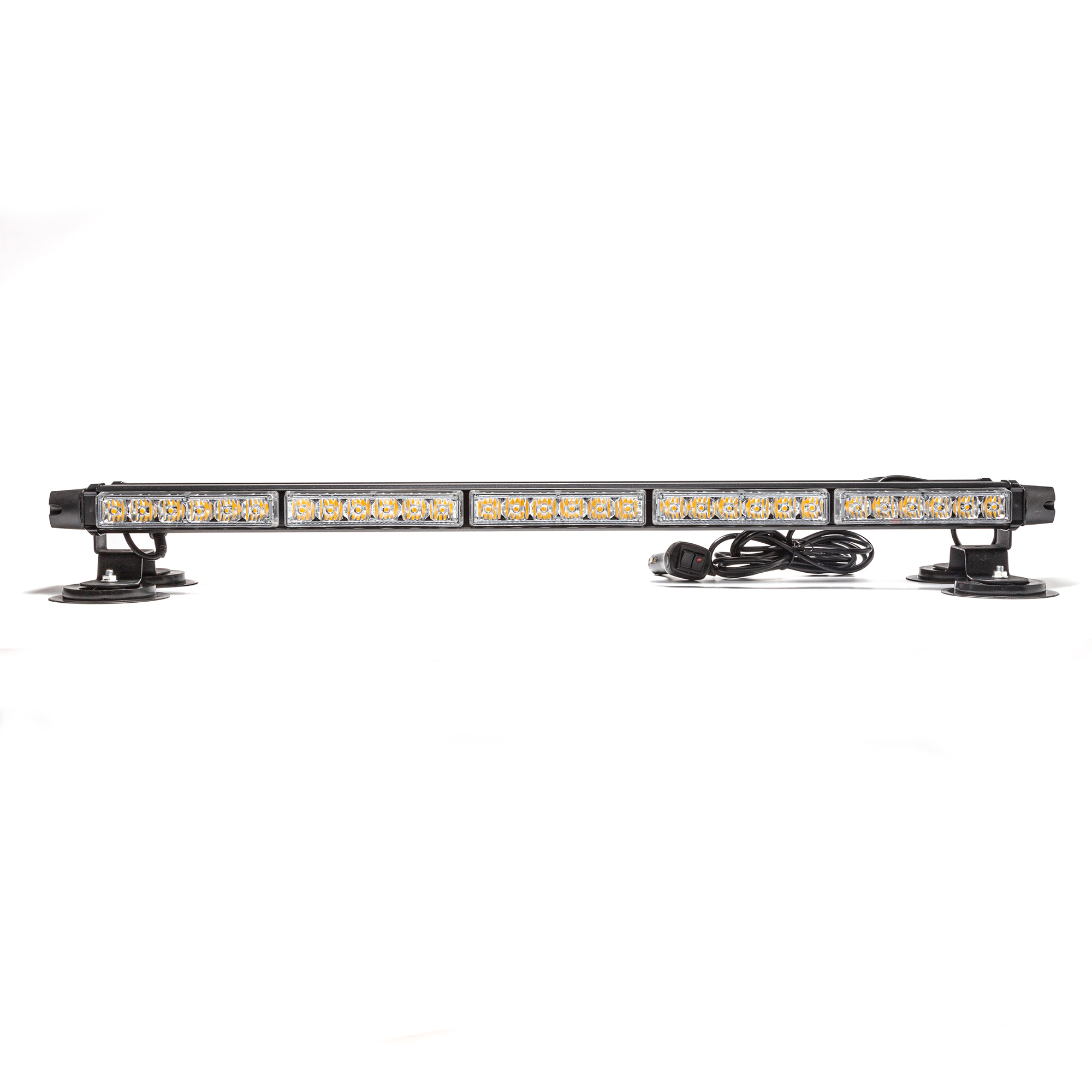 Маяк-стробоскоп 12/24 В, 66 Вт, желтый, 4-стор. (5+5+2 блока Epistar), 28 реж., крепление на магните, прикуриватель (провод 3м), 730*120*78 мм