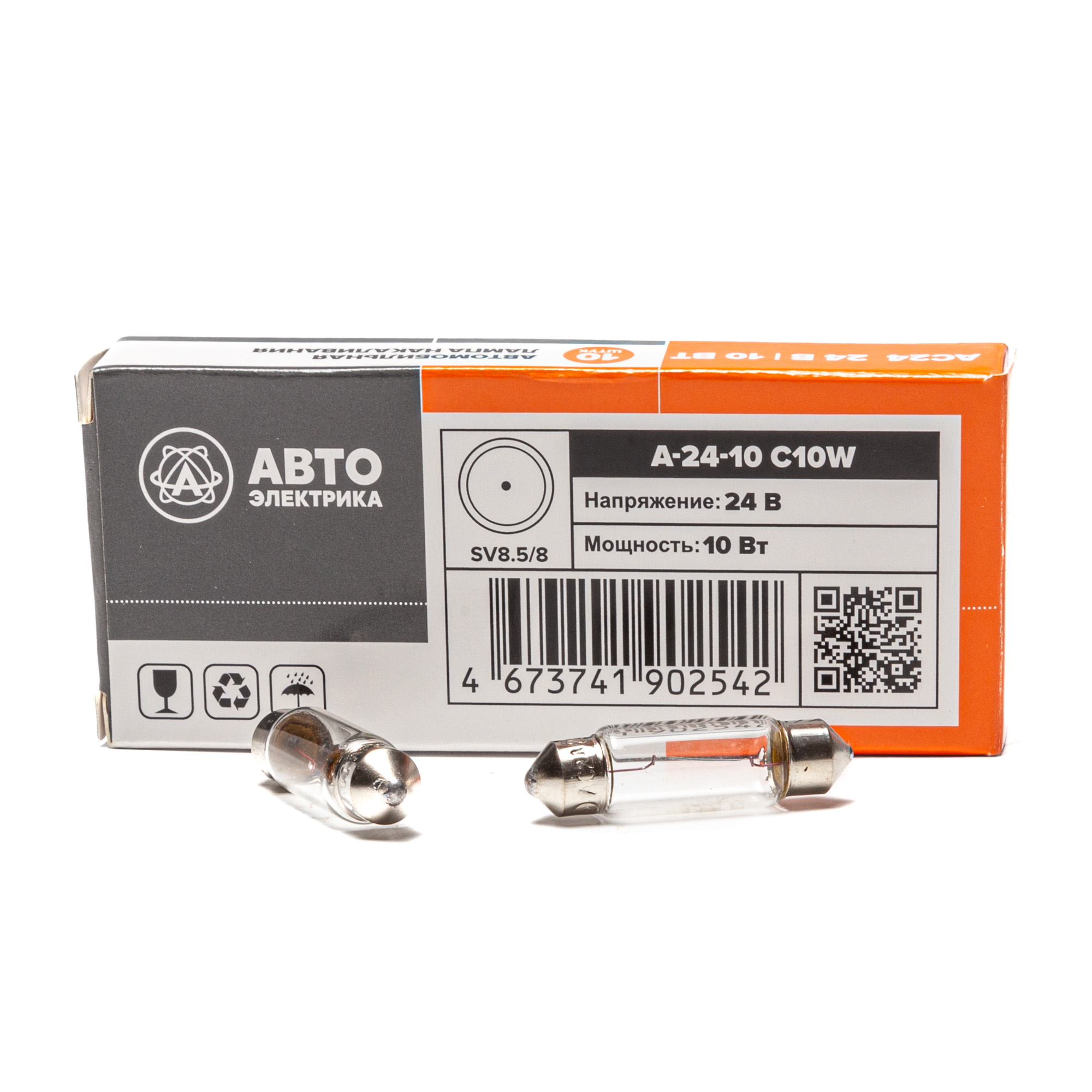 Автолампа накаливания C10W, 24 В, 10 Вт, SV8.5/8 (двухцокольная, 38 мм)