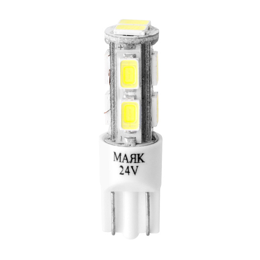Автолампа светодиодная T10 (W5W), 24 В, W2.1X9.5D, 10SMD (5730) WHITE (бесцокольная, блистер, 2 шт)