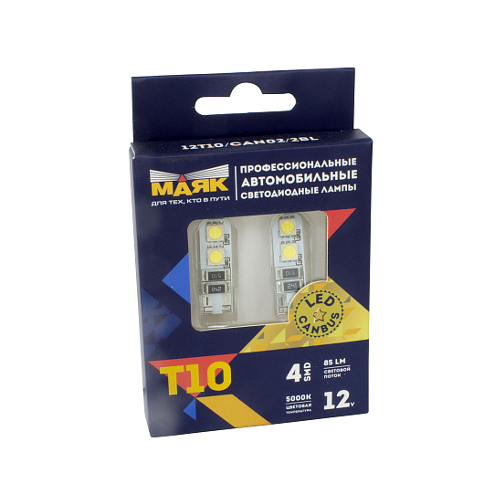 Автолампа светодиодная T10 (W5W), 12 В, W2.1x9.5D, 4SMD(5050) 360° SUPER WHITE (бесцокольная, блистер, 2 шт)