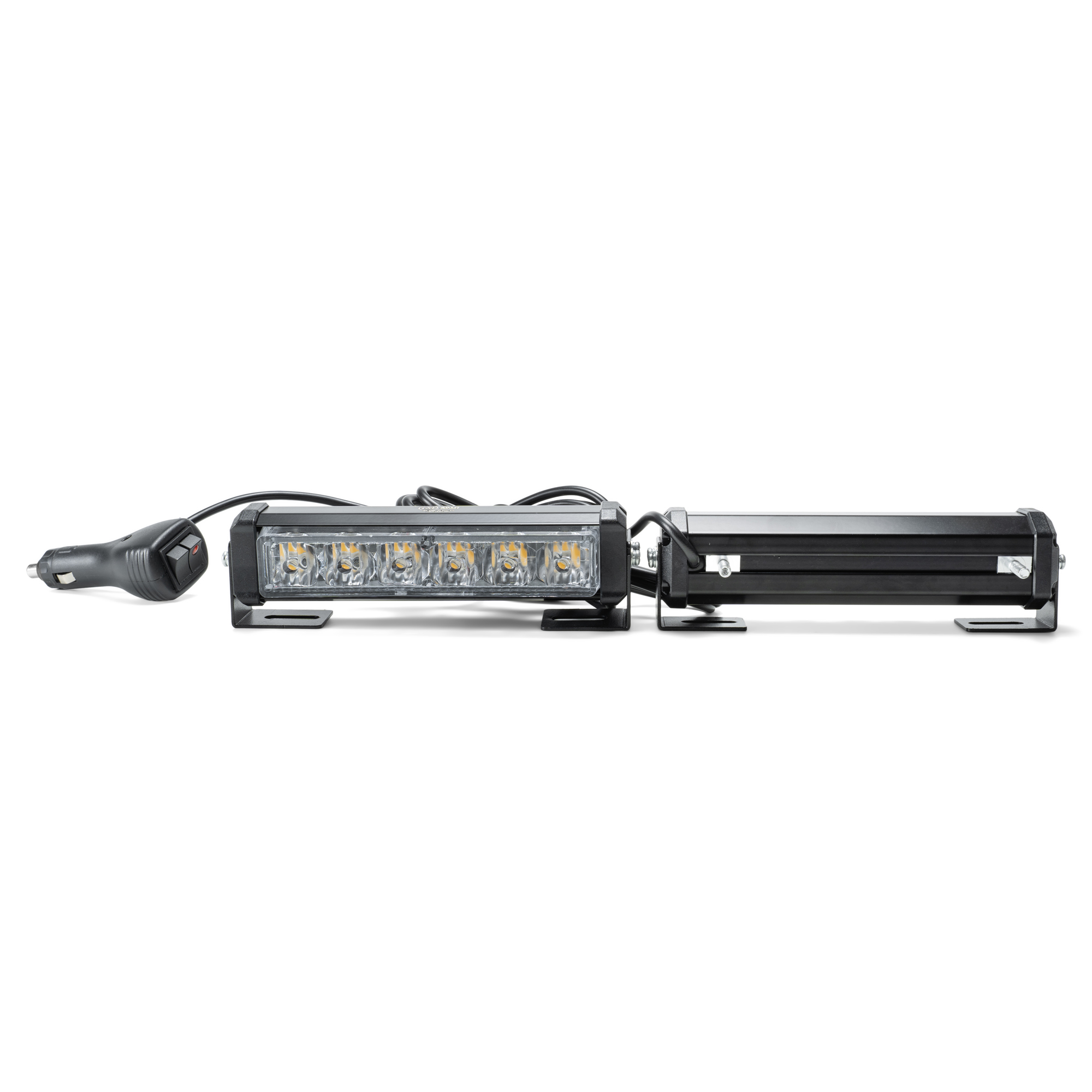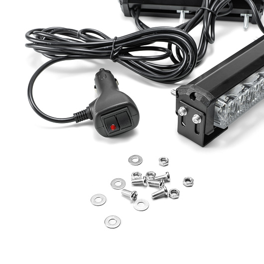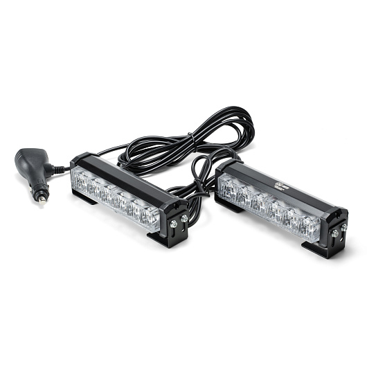 Маяк-стробоскоп (2 раздельных блока), 12/24 В, 6 Вт, желтый, 1-стор. (1+1 блок Epistar), 16 реж., крепление на кронштейне, прикуриватель (провод 3м), L=164мм
