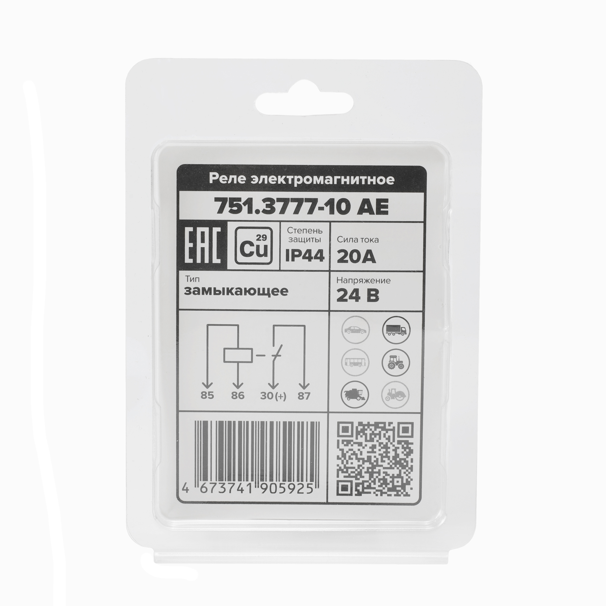 Реле стартера (4-х контактное), ГАЗ, КамАЗ, МАЗ, ПТЗ, 24 В, 20 А, замыкающее, с кронштейном (карман под кронштейн), медные контакты, в блистере (ан. 901.3747-10, 981.3777-10)