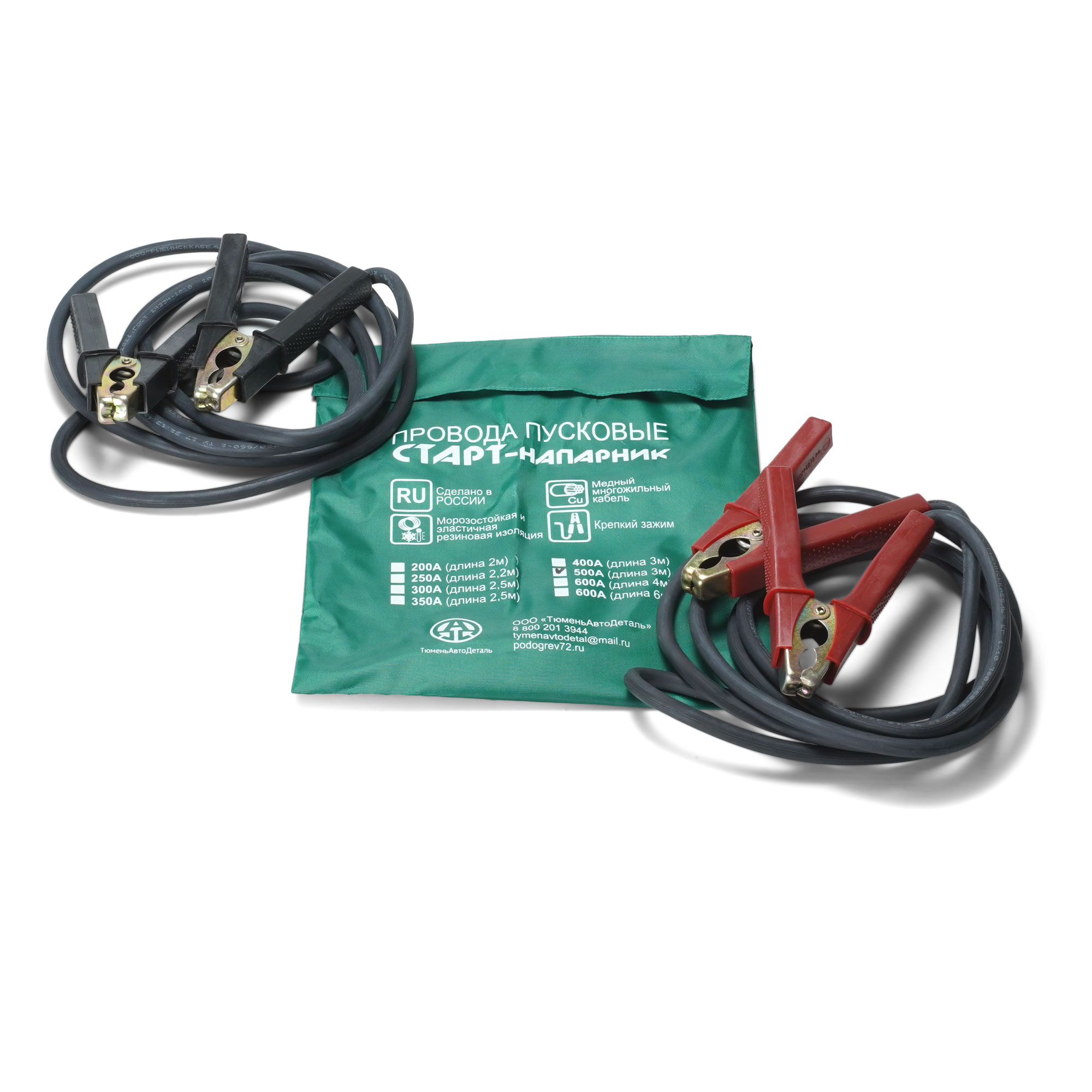 Провода пусковые, медные, 500 А, длинна 3 м, 1х10 кв.мм