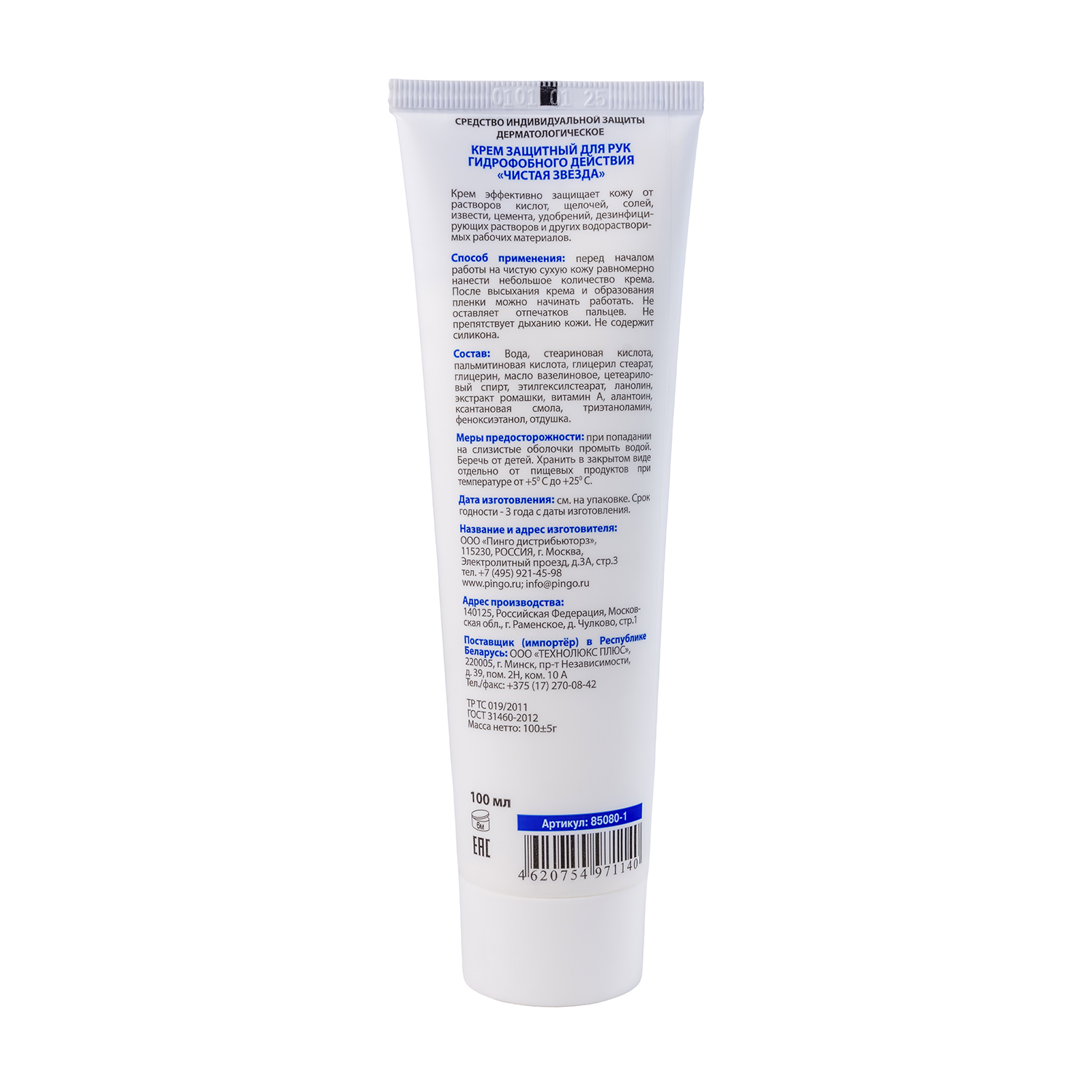 Крем защитный для рук гидрофобного действия «Чистая звезда» туба 100 мл