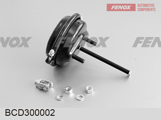 Камера тормозная пневматическая, МАЗ, КамАЗ, тип 30, шпильки М16*1.5 (120мм), шток М16*1.5 (длинный), вылет штока 200мм, ход штока 57мм (ан. 100-3519310-20)