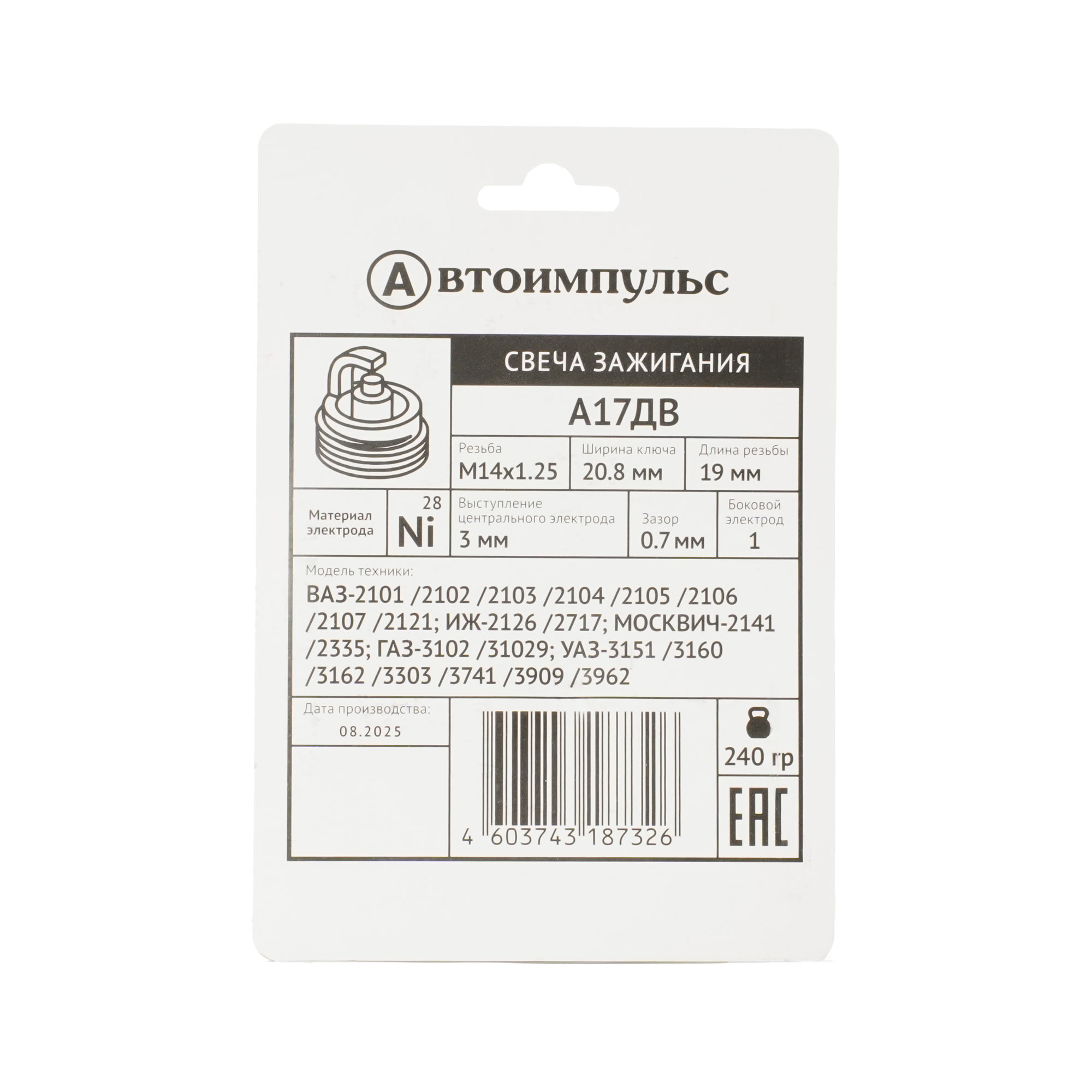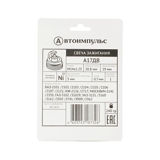 Свеча зажигания, ВАЗ, ГАЗ, длинная юбка (блистер 4шт)