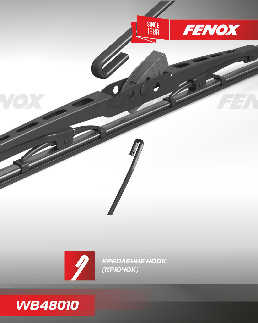 Щетка стеклоочистителя, каркасная, 480 мм, крюк, универсальная