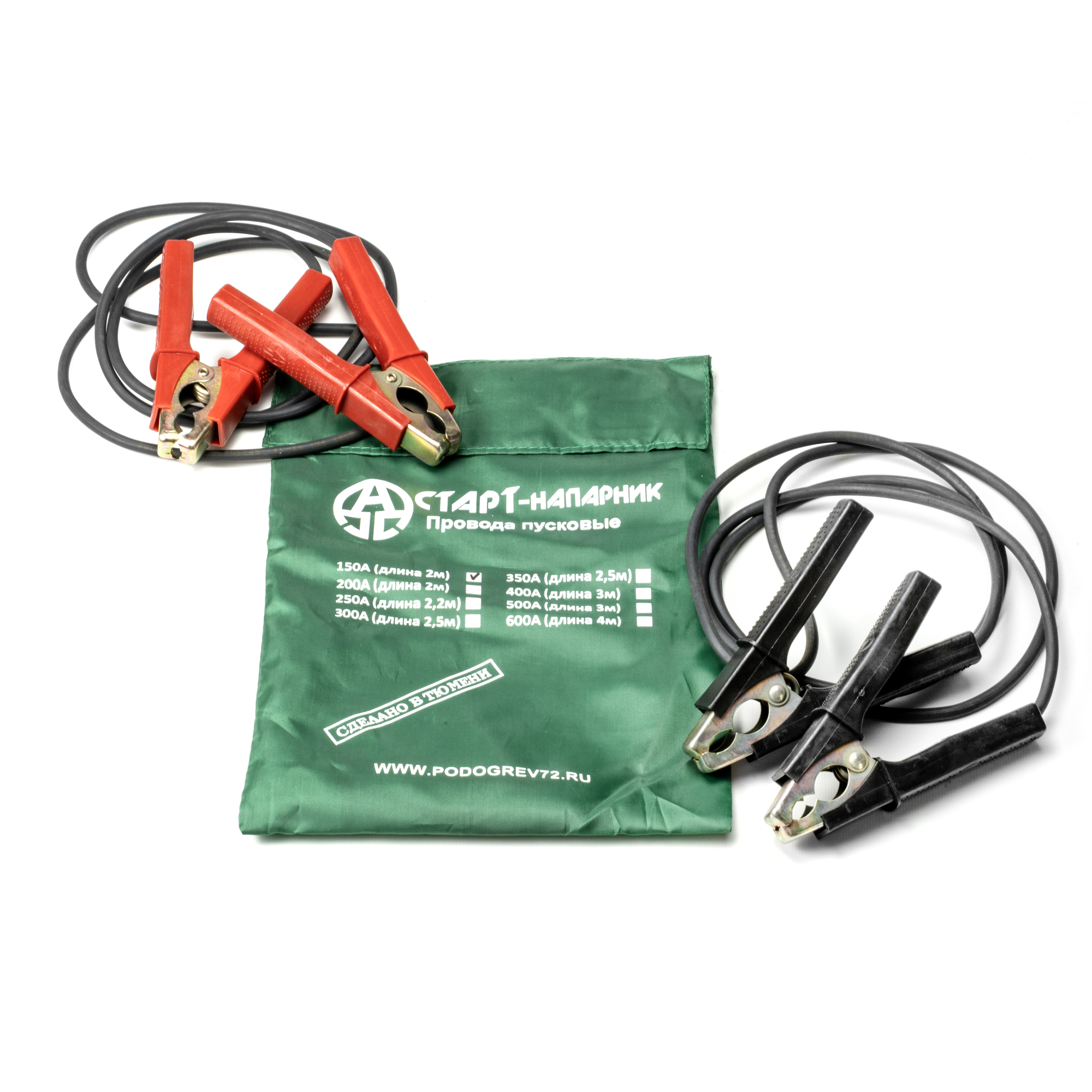 Провода пусковые, медные, 150 А, длинна 2 м, 1х4 кв.мм