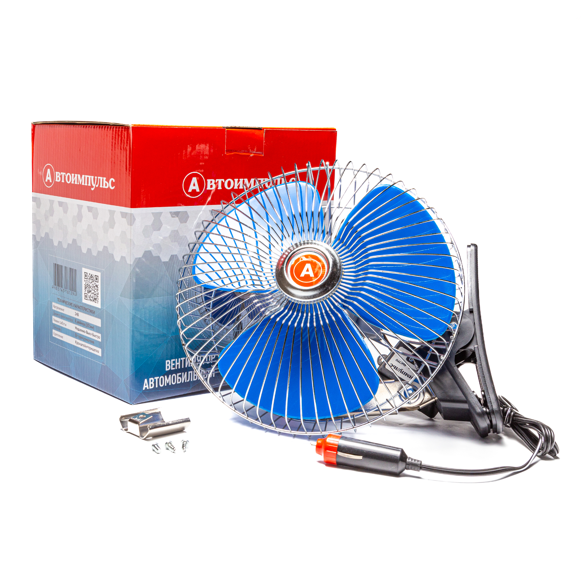 Вентилятор кабины/салона автономный, 8 дюймов, 203\215 мм, кронштейн-прищепка, с регулятором скорости, 24 В