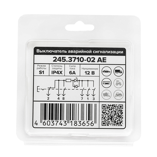 Выключатель аварийной сигнализации, ИЖ, УАЗ, ВАЗ, ГАЗ, ПАЗ, 12 В (ан. 249.3710-01)