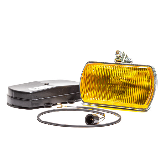 Фара противотуманная, желтая, прямоугольная, рифленое стекло, с крышкой, универсальная, 12/24 В (H1)