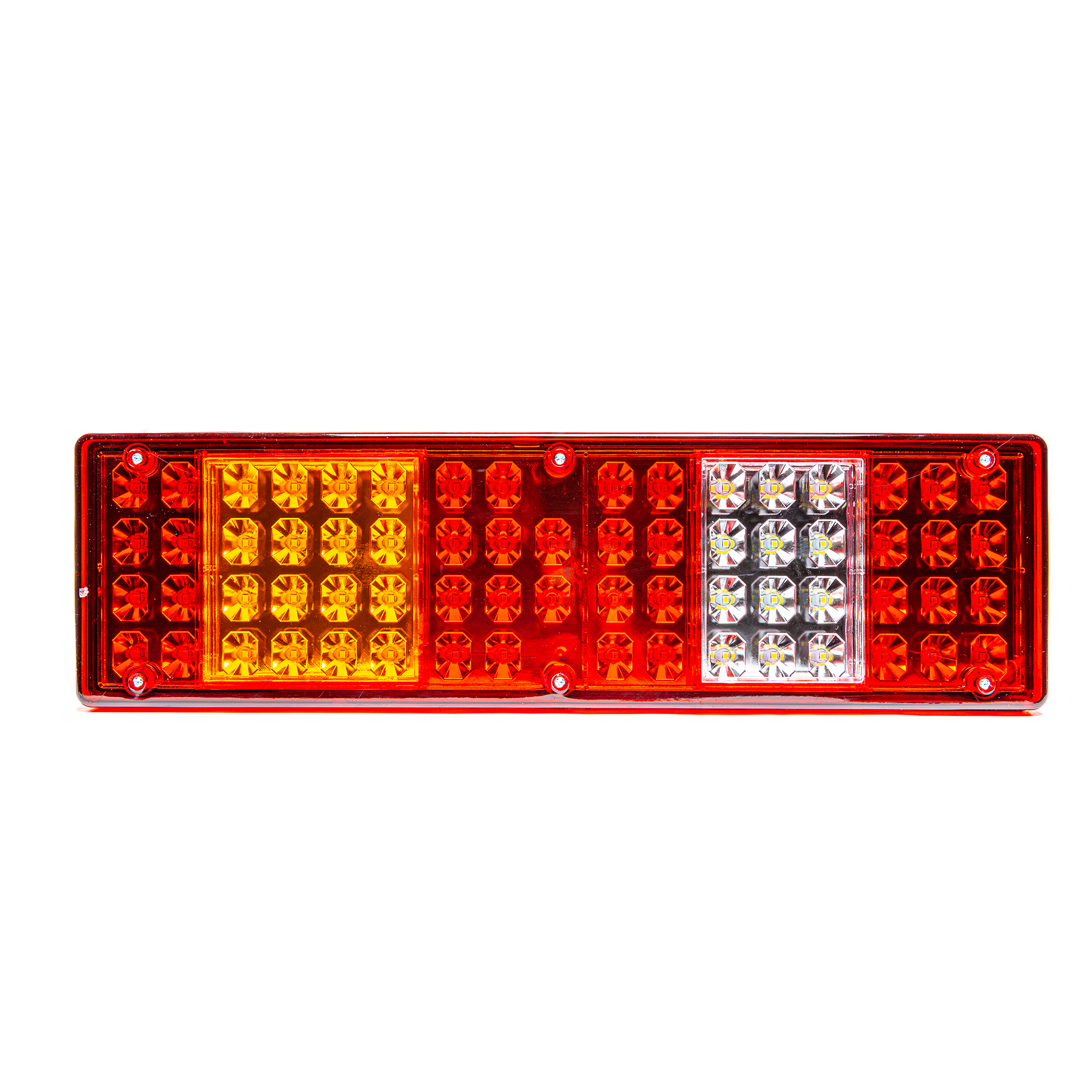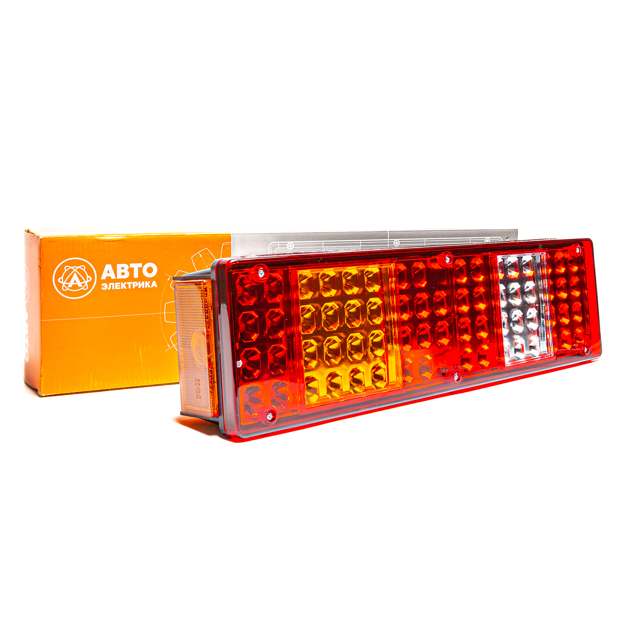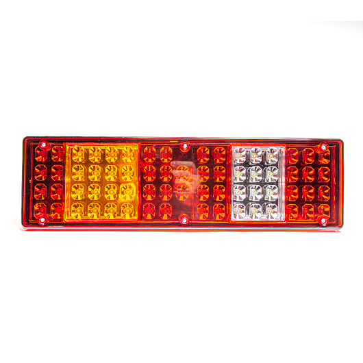 Фонарь задний, КамАЗ, МАЗ, УРАЛ, левый, светодиодный, с боковым габаритом, со светоотражателем, с подсветкой номера, жгут с вилкой сцаз, 24 В